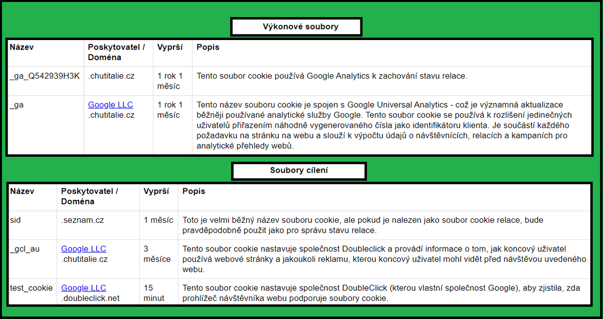 Webová stránka nemůže bez těchto Cookies správně fungovat.